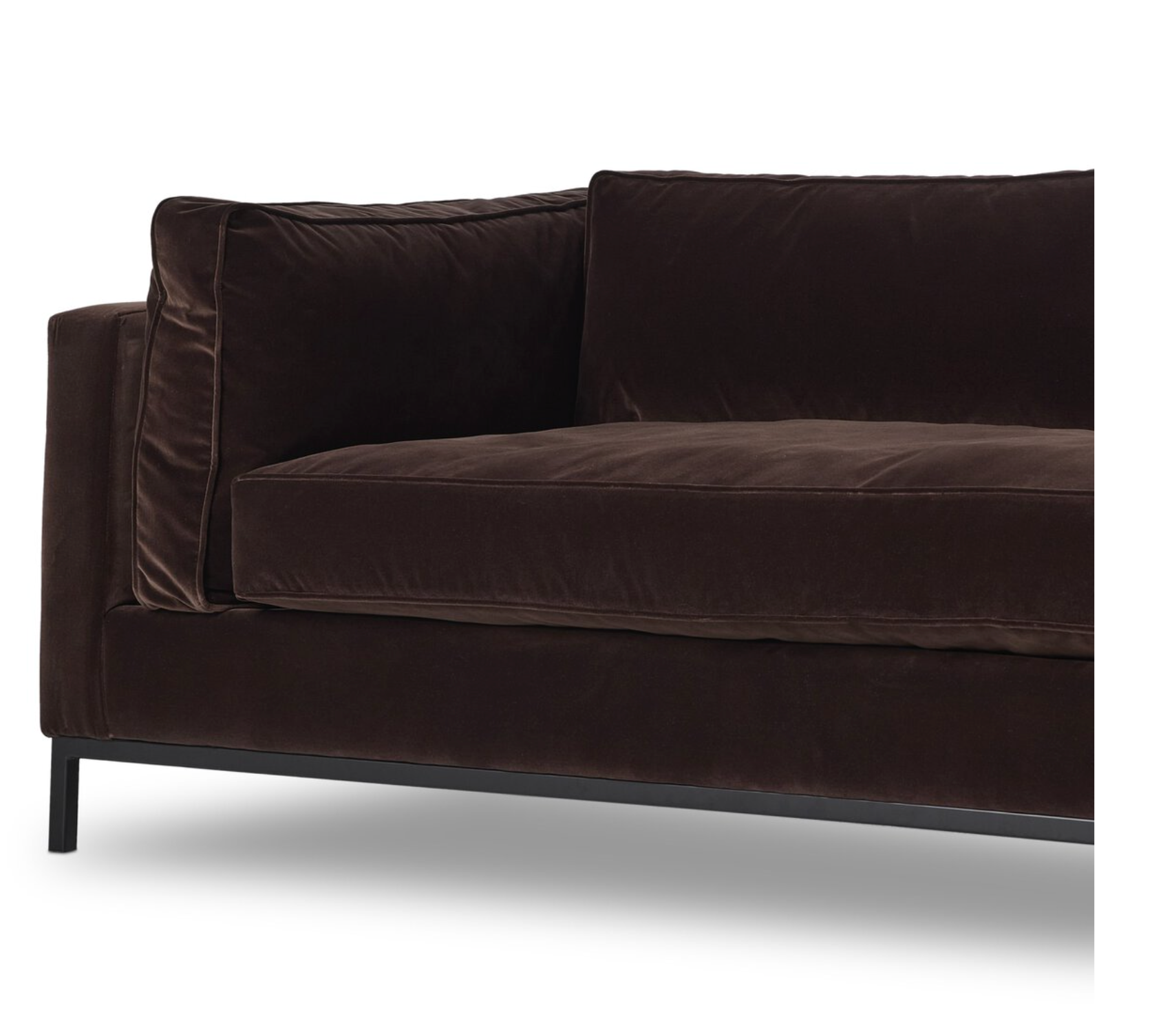 Flexible style with luxurious comfort. Clean, simple lines and a black iron base keep everything casual and chic.